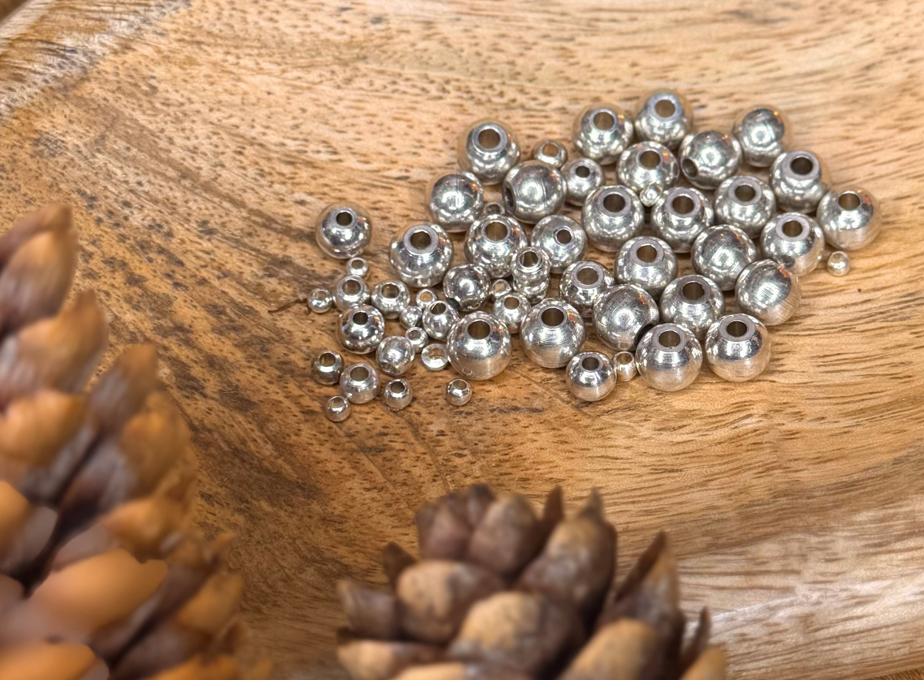 J'utilise des perles en laiton doré et argenté , ou en pierre naturelle.